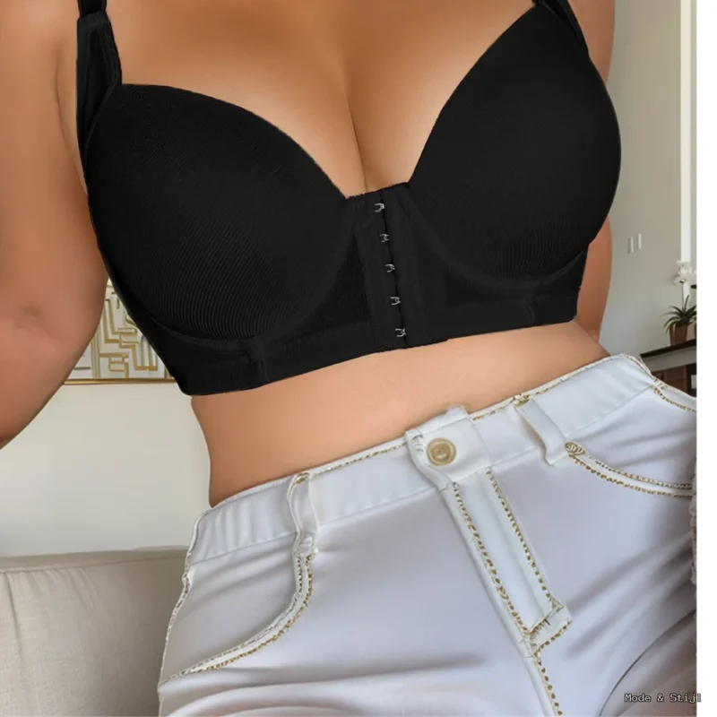 Ervaar lift, steun en comfort met onze Push-Up BH Voorfront, U-Rug, Volledige Steun C–F Cups. Speciaal ontworpen voor vollere borsten, combineert deze BH functionele steun met een flatterende vorm. De voorfront sluiting maakt aan- en uittrekken eenvoudig, terwijl de U-vormige rug het silhouet gladstrijkt. Het push-up clustering ontwerp met stalen beugel tilt en vormt de buste voor een natuurlijke cleavage. Verkrijgbaar in zwart, wit en nude, ideaal voor dagelijks gebruik, speciale gelegenheden of onder kledinglagen.